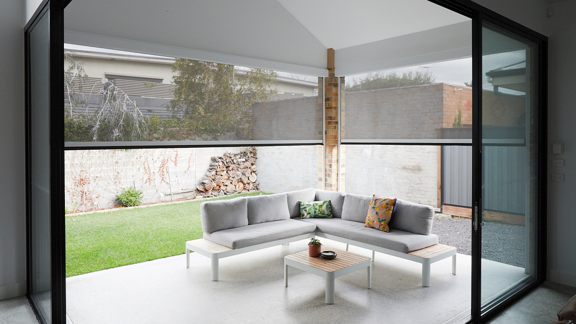 Is the ultimate external screening solution for any outdoor area or window. Specially designed for alfresco-entertaining areas such as pergolas, verandas, and balconies, it offers privacy and protection from the sun, wind, rain, and insects all year round.